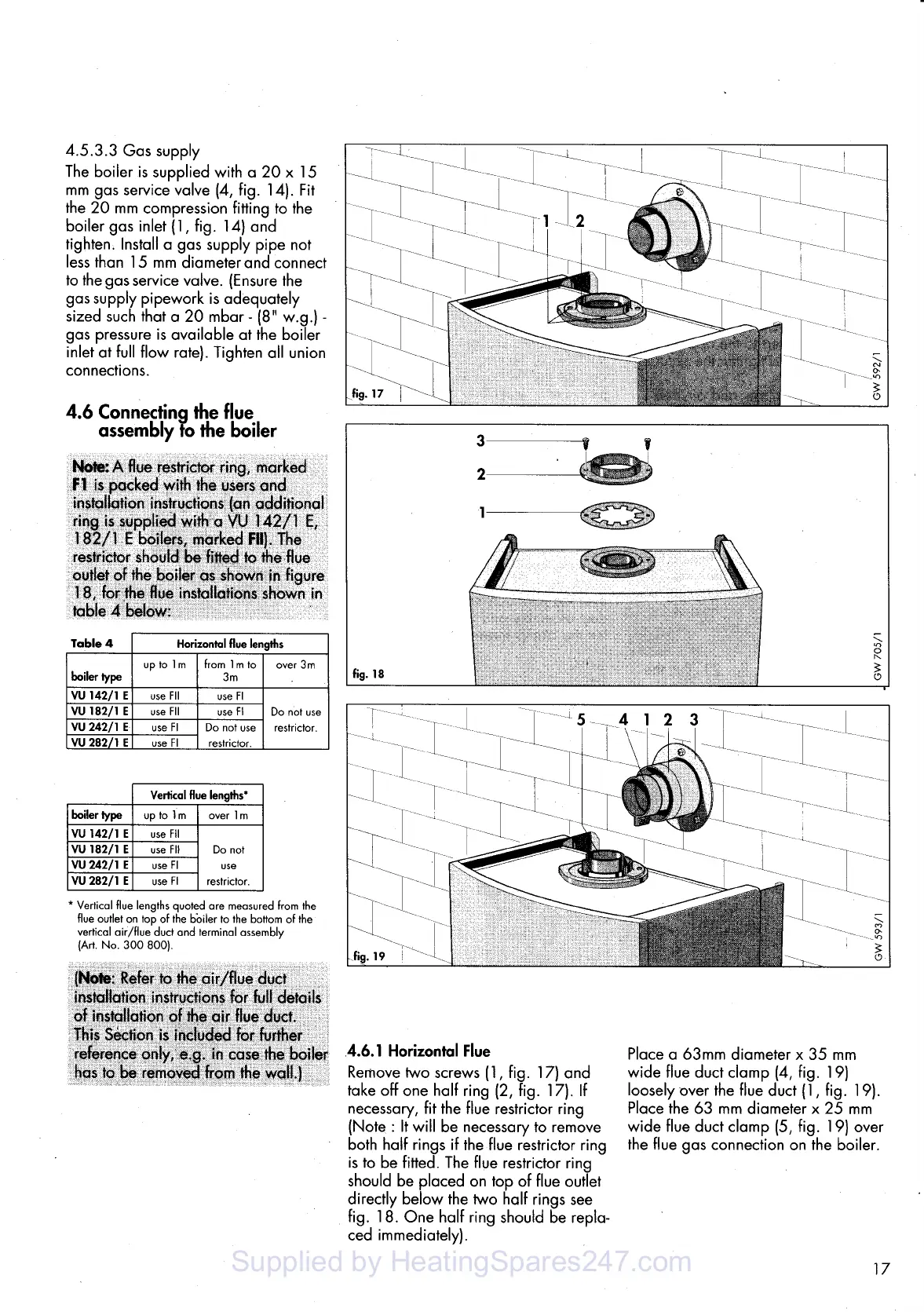 Vaillant thermocompact vu 182/1 e - Connecting the Flue Assembly to the Boiler; Horizontal Flue