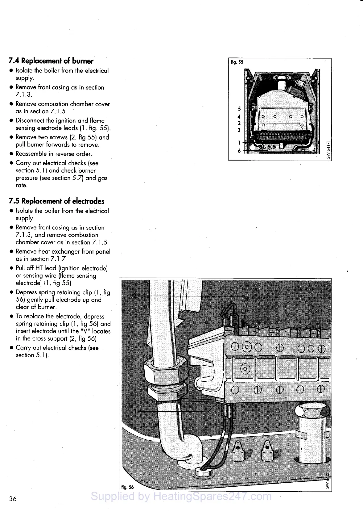 Vaillant thermocompact vu 182/1 e - 7.4 Replacement of Burner; 7.5 Replacement of Electrodes