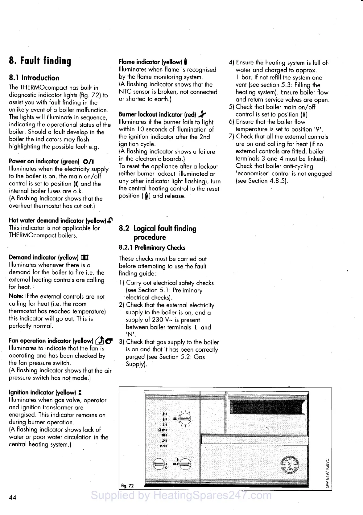 Vaillant thermocompact vu 182/1 e - Fault Finding; Colored Indicators; Prelimitary Checks