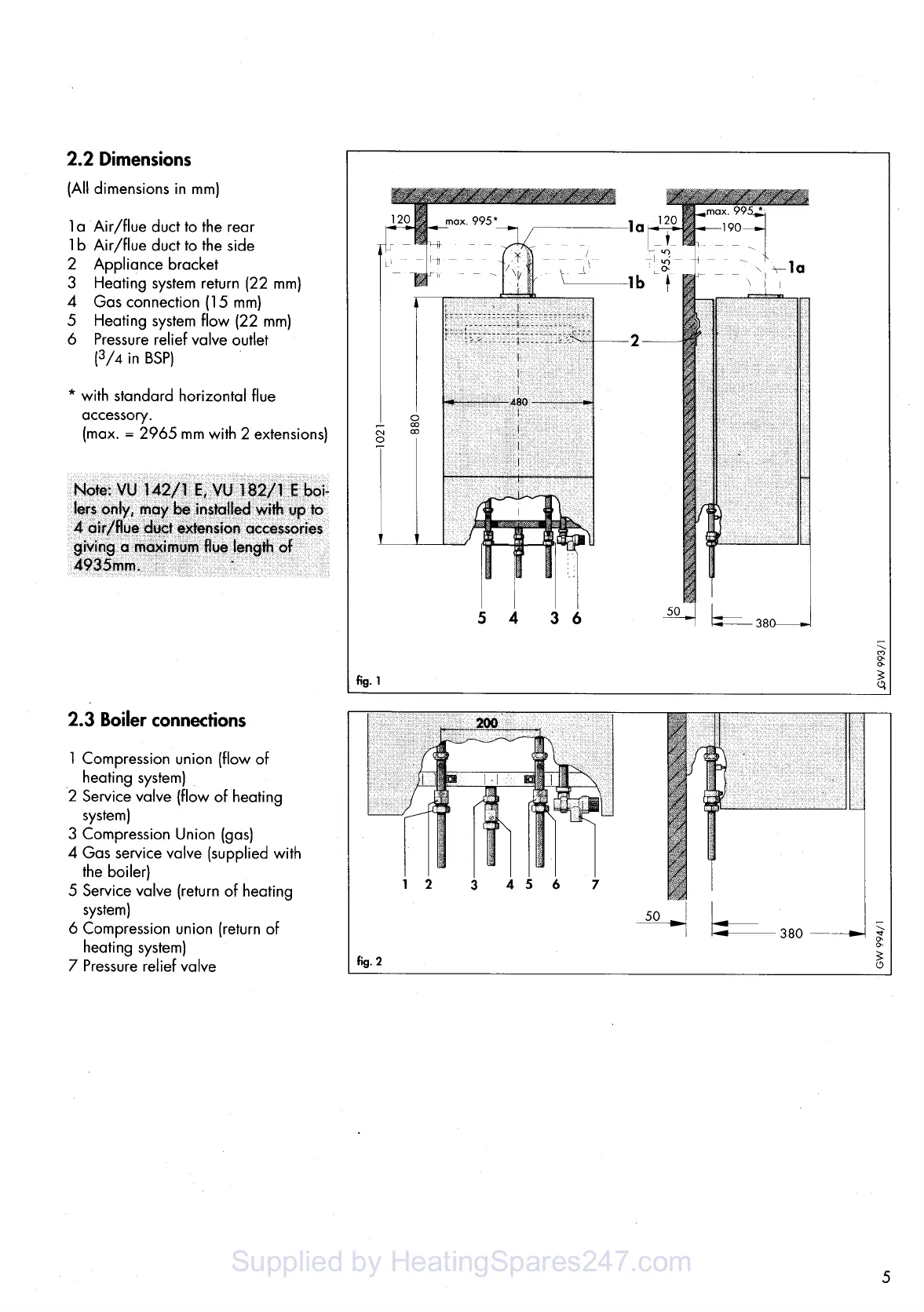 Vaillant thermocompact vu 282/1 e - Dimensions; Boiler Connections