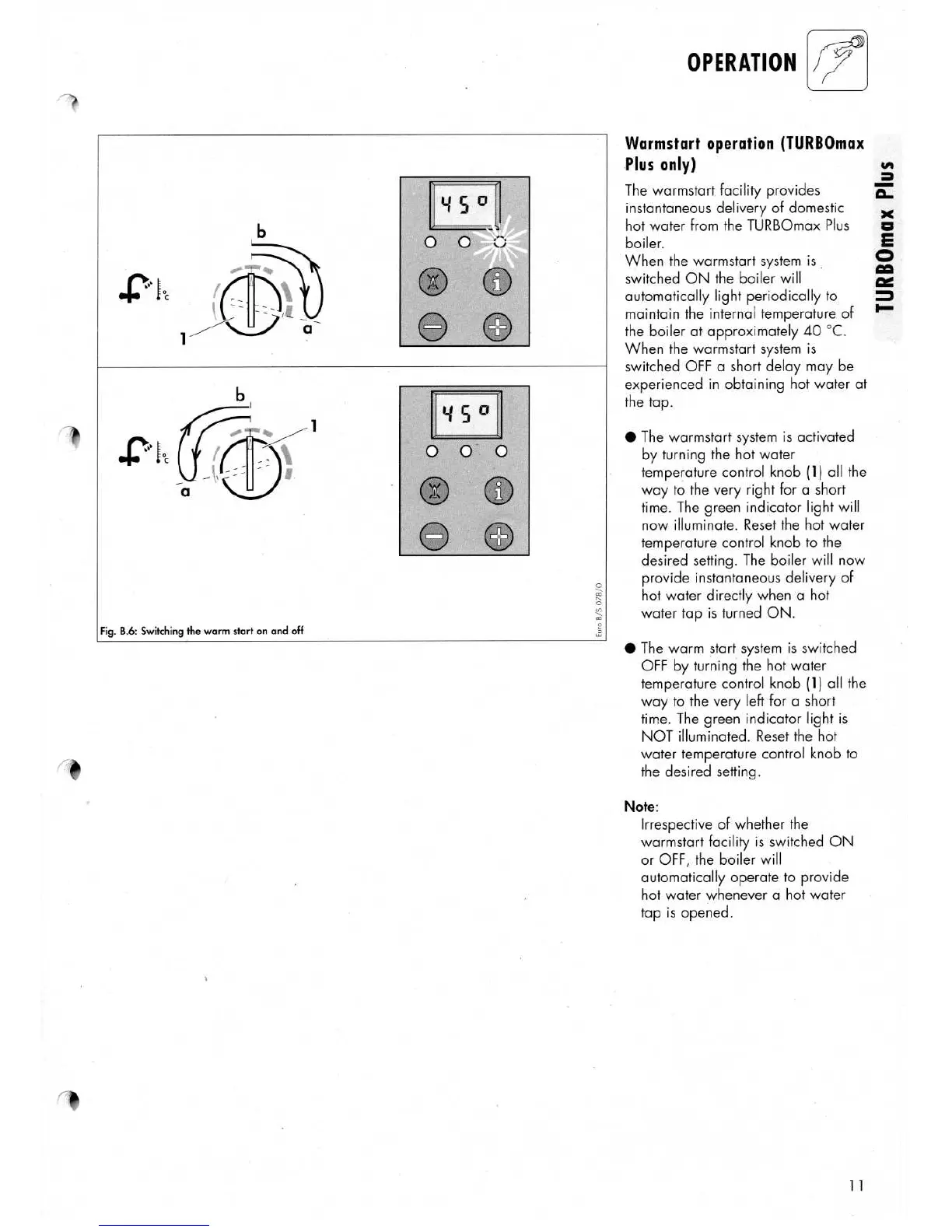 Vaillant Turbomax Plus 824 E - Warmstart Operation (TURBOmax Plus)