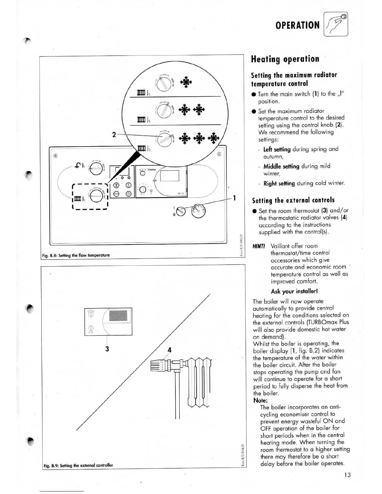 Vaillant Turbomax Plus 828 E - Maximum Radiator Temperature Setting; External Heating Controls