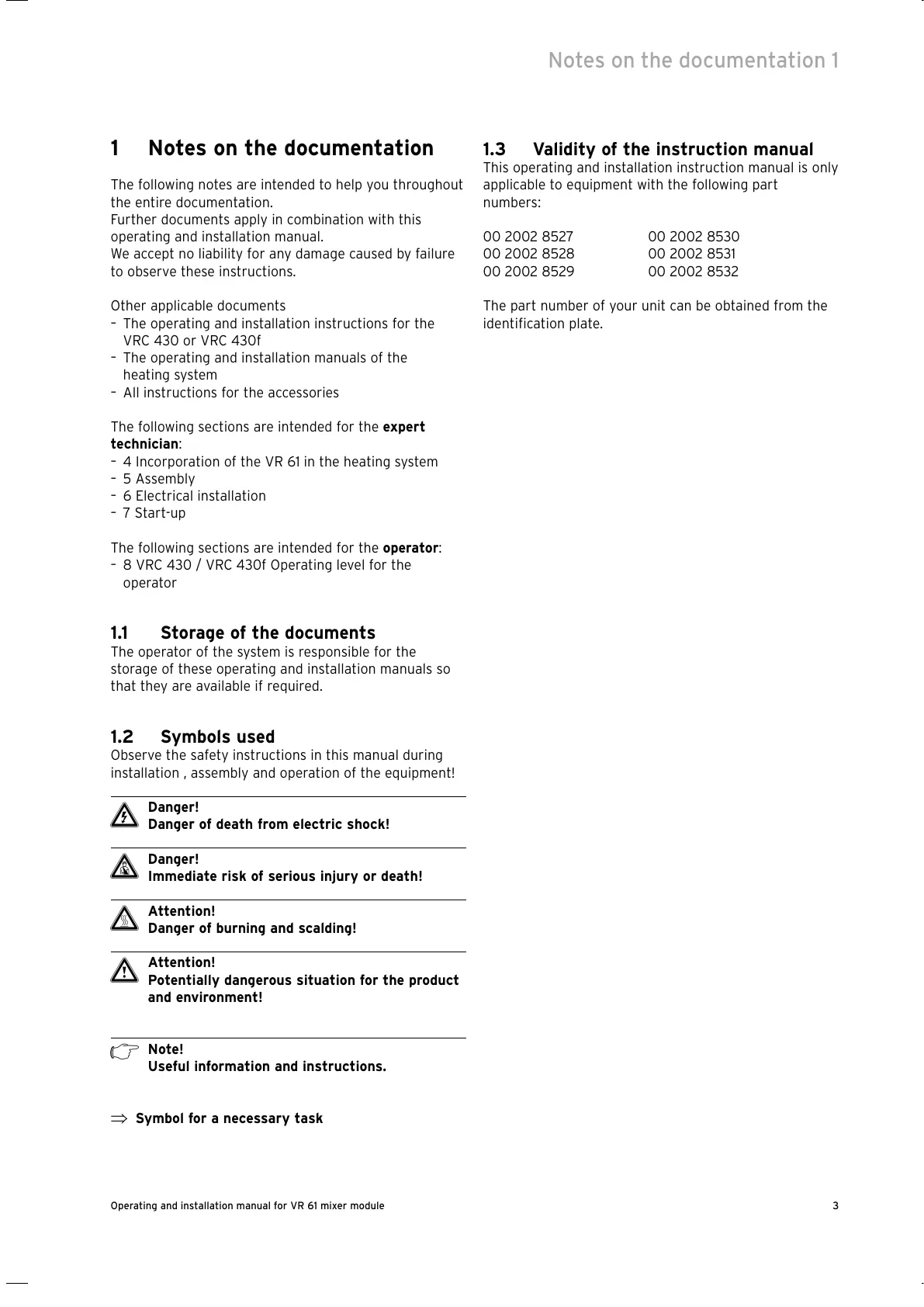 3Operating and installation manual for VR 61 mixer module