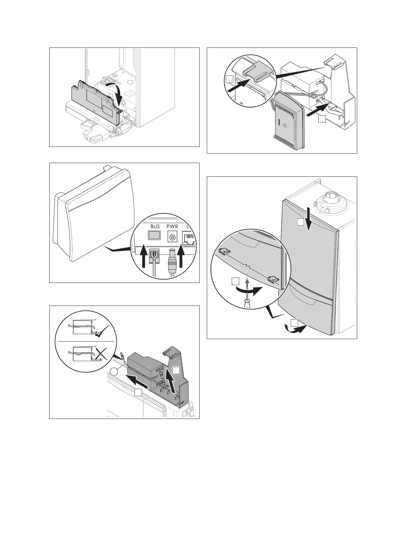 16. Sisestage eBUS-kaabli ja toitepingekaabli pistik side-