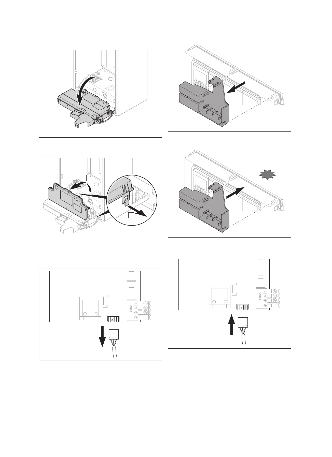 9. Tirez le clapet du boîtier électrique vers vous (B).