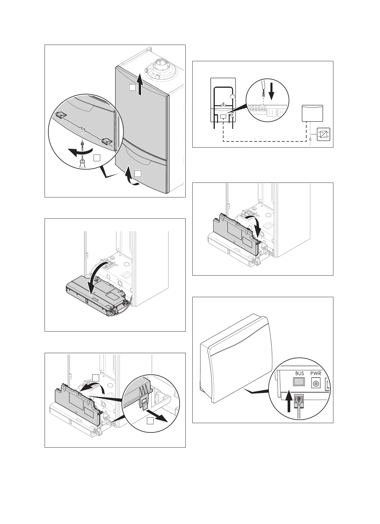 6. Aprire l'alloggiamento della scheda comando nei punti