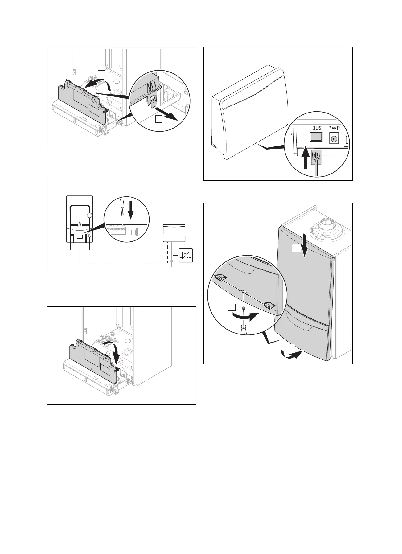 9. Ištraukite „eBUS“ liniją iš šildymo prietaiso per kabelių