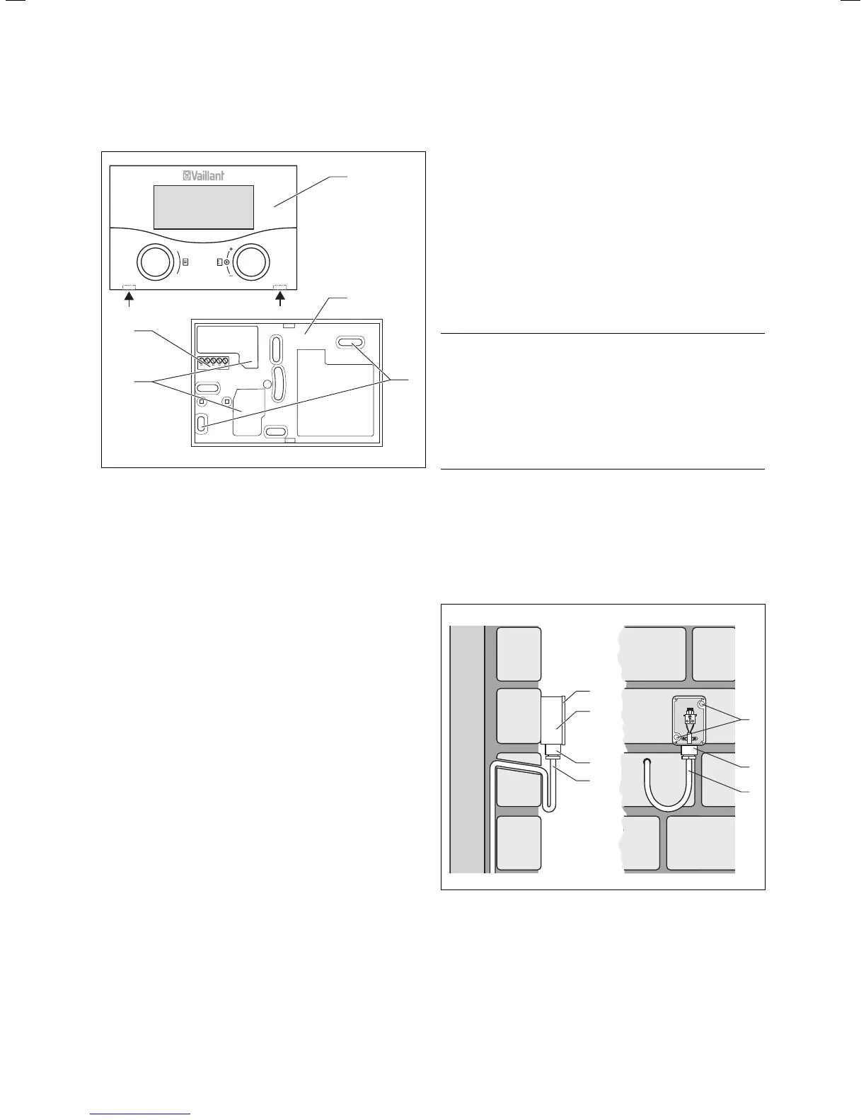 ⇒Pull the room thermostat (1) off the wall plinth (2).