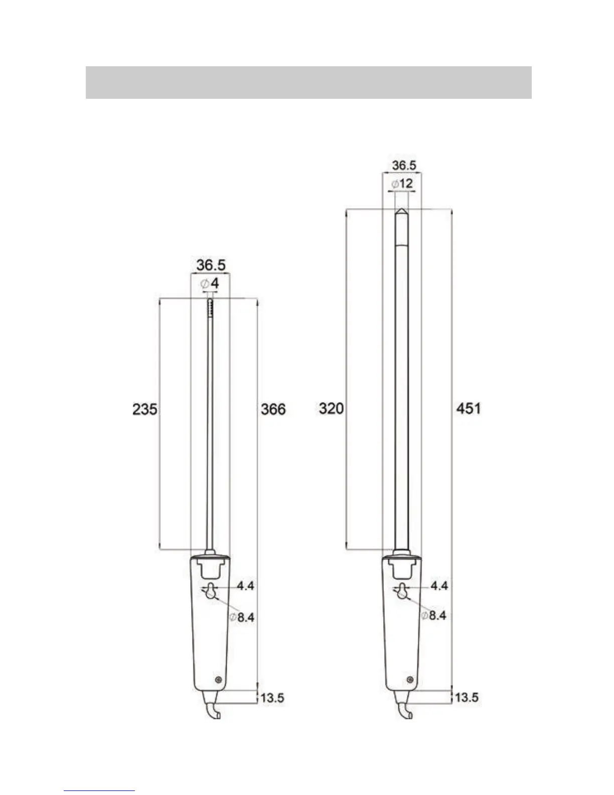 Vaisala HM41 - HM42 and HM46 Probe Dimensions