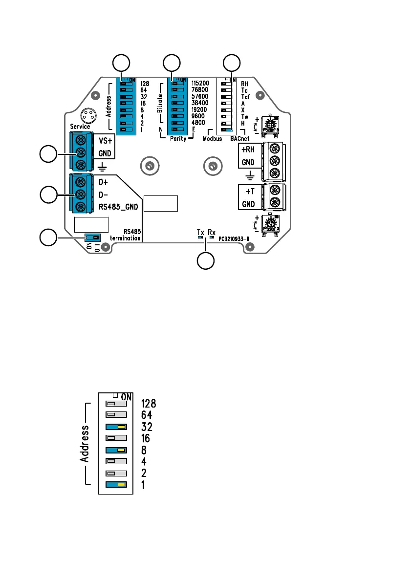 1 DIP switch for setting RS-485 termination (120 Ω resistor) ON/OFF