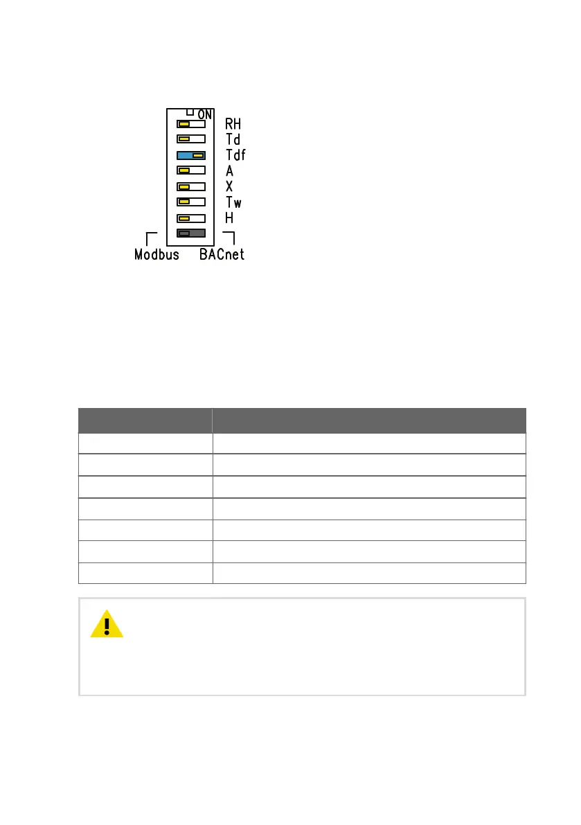 Note that the humidity output parameter selected with the DIP