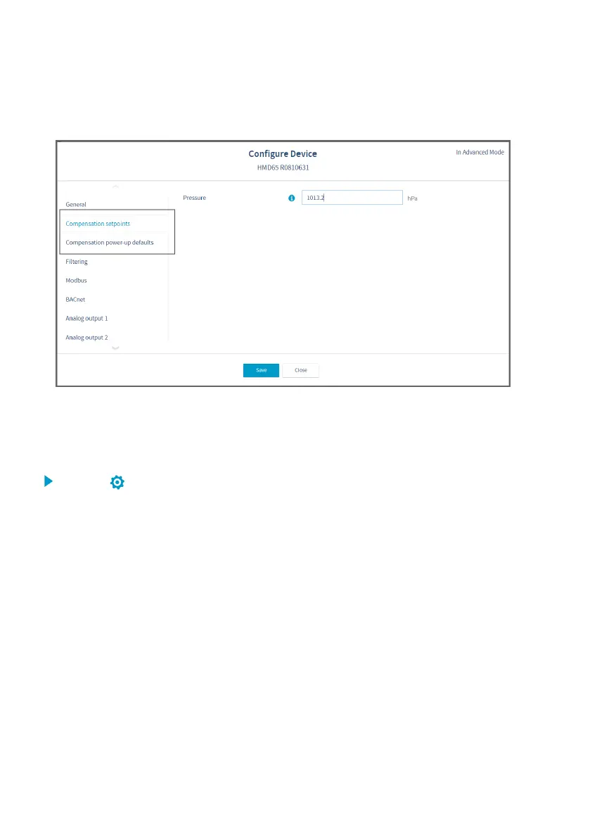 restart), select Compensation setpoints, enter a value, and select Save.