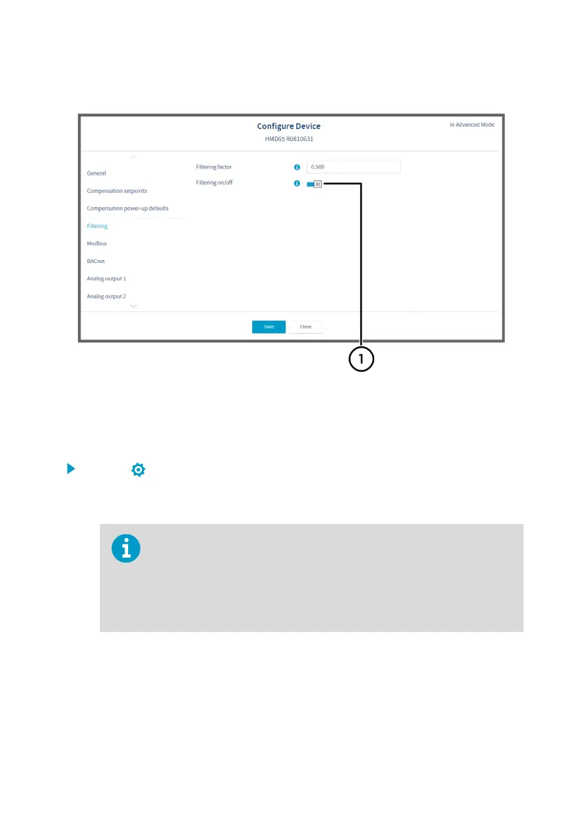 • Filtering factor 1.000 = No filtering, the latest measurement is output