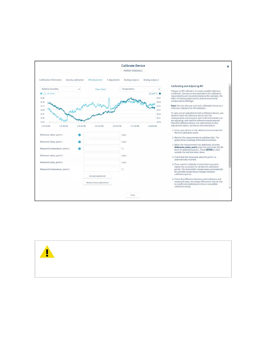 You can use the Insight PC software to calibrate and adjust the RH or T measurement in 1 or 2