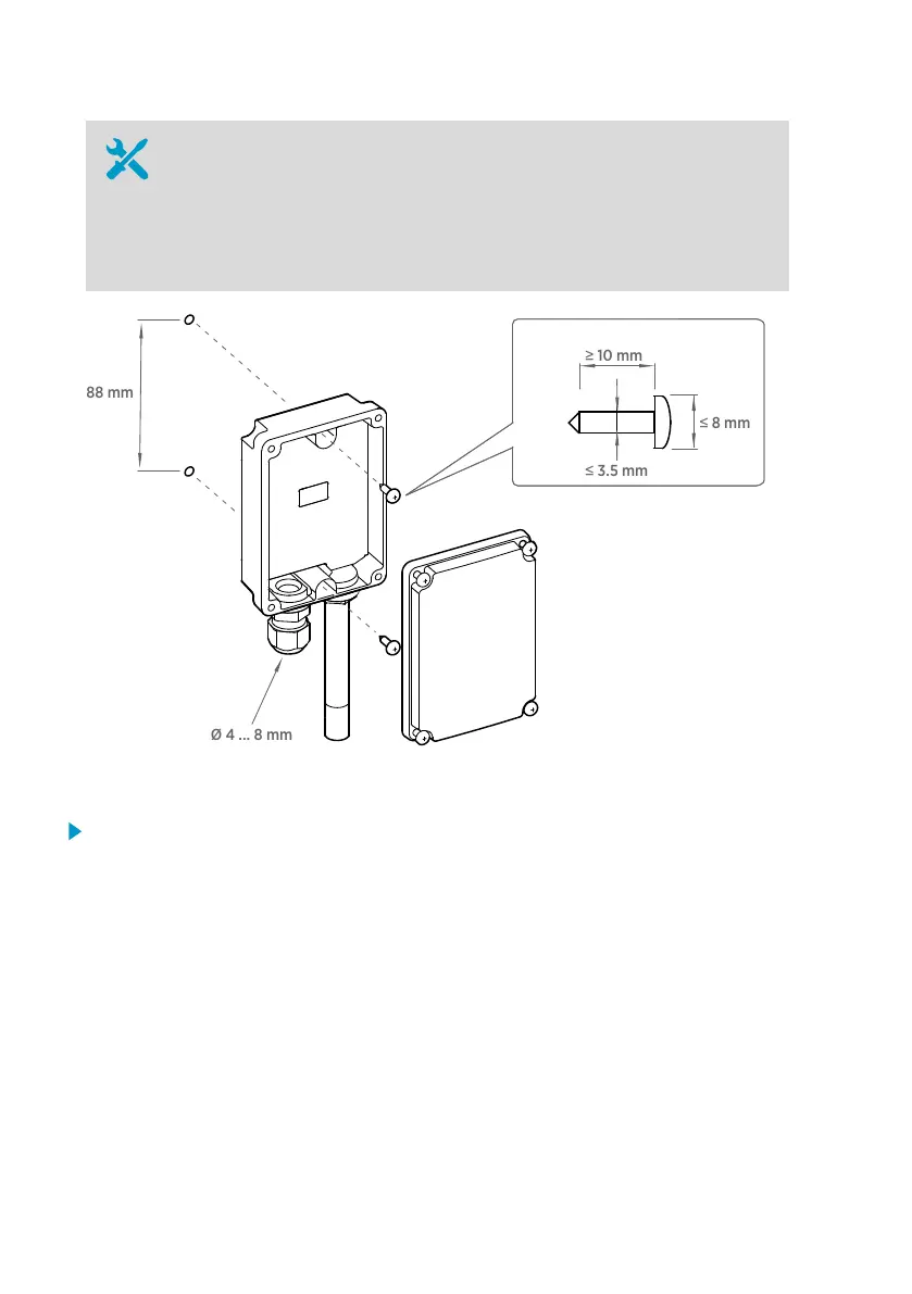 • 2 本の取り付けネジ:Ø ≤ 3.5 mm、ヘッド Ø ≤ 8 mm。
