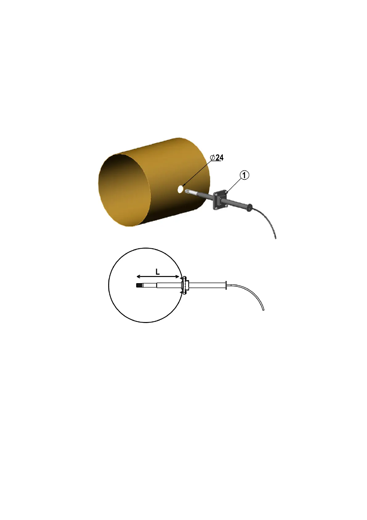 drill a hole to the duct wall, assemble the probe to the duct installation