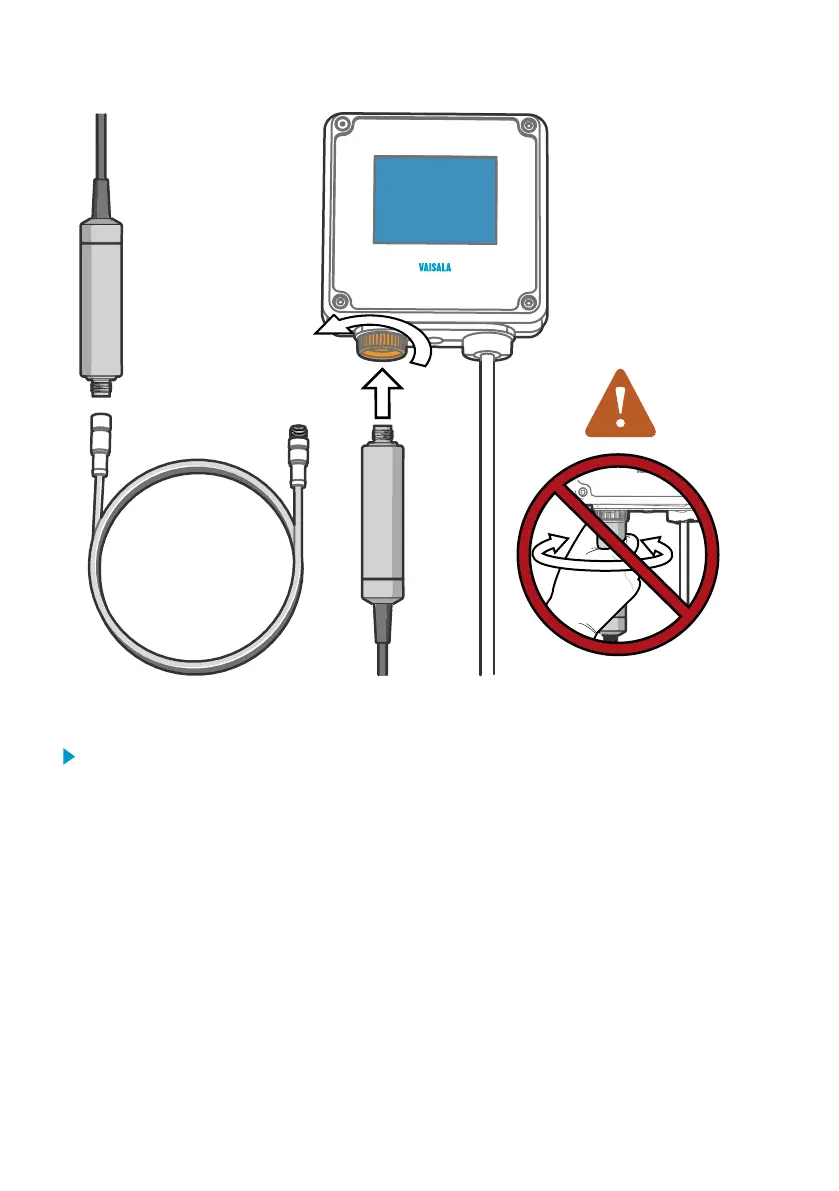 1. Insert the probe or the connection cable into the transmitter's connector. Use of