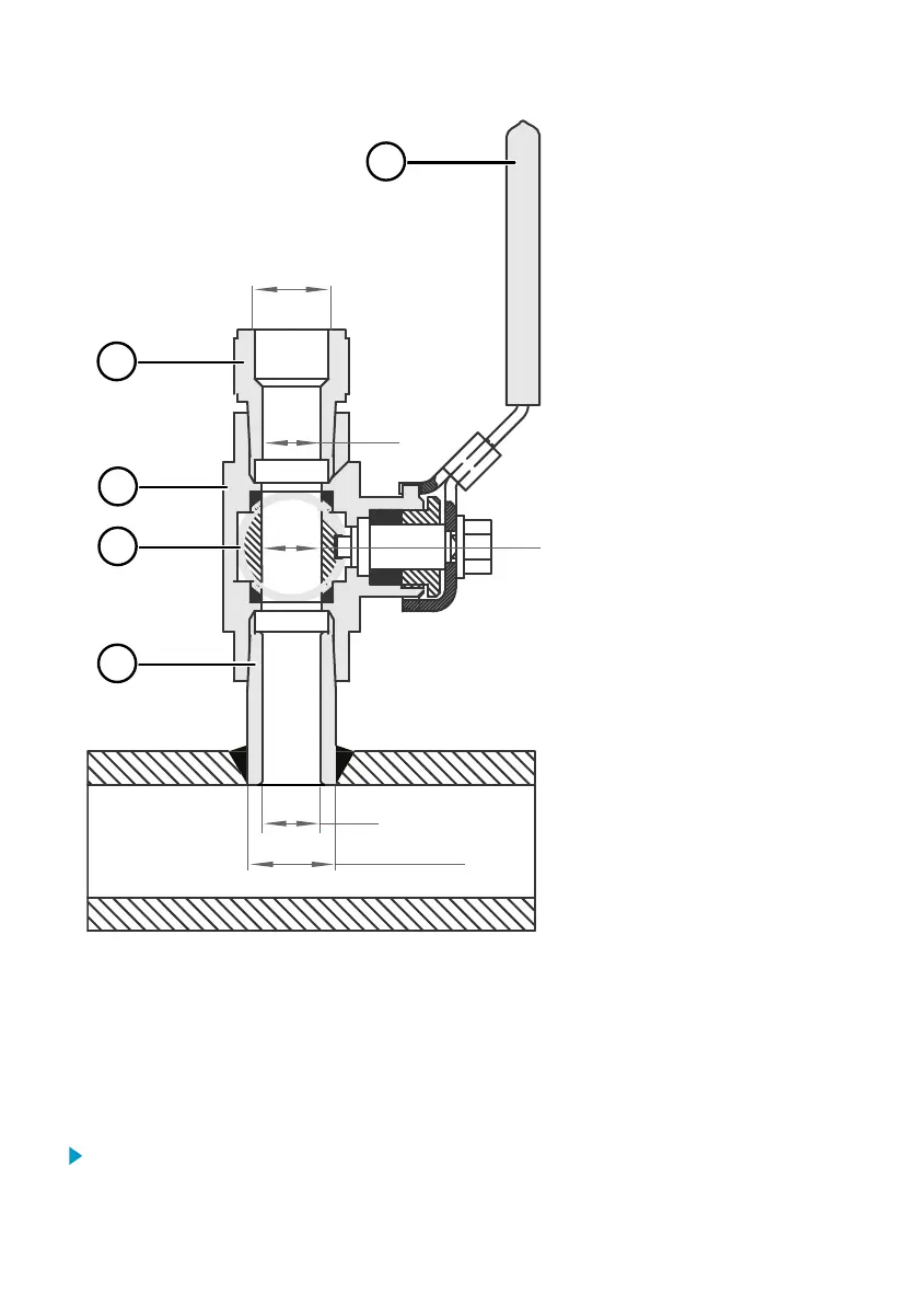 1 ボールバルブハンドル: 取り付け時には、ボールバルブ本体と同じ向きを指している