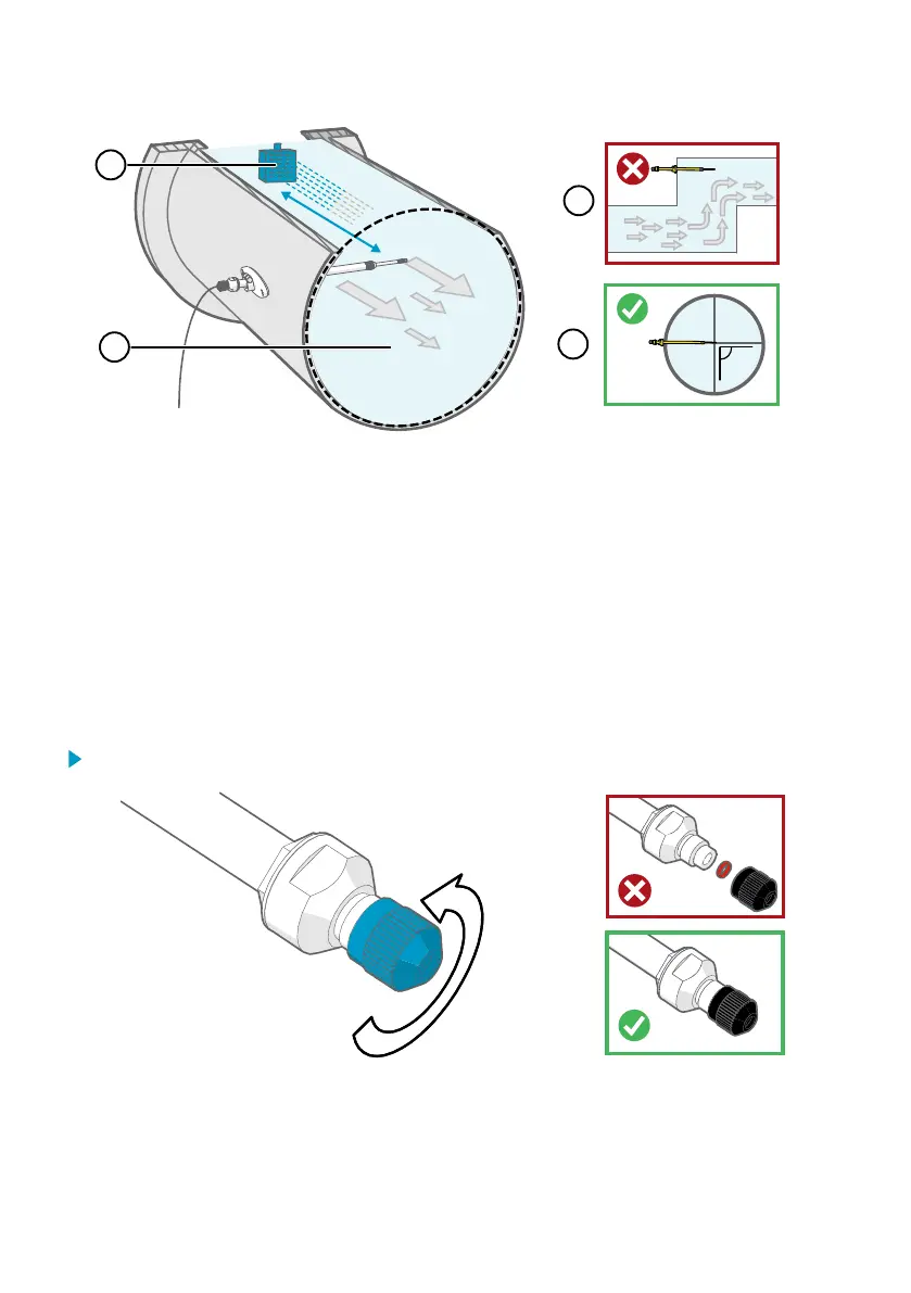 4 Install the probe head in a 90° angle to prevent condensation from travelling to the sensor