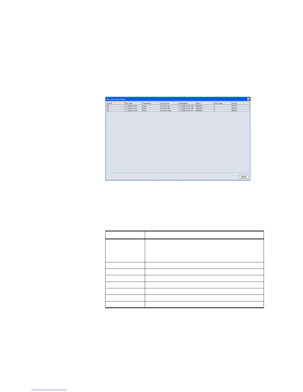 Table 20 Fields in Auto Download Status Window