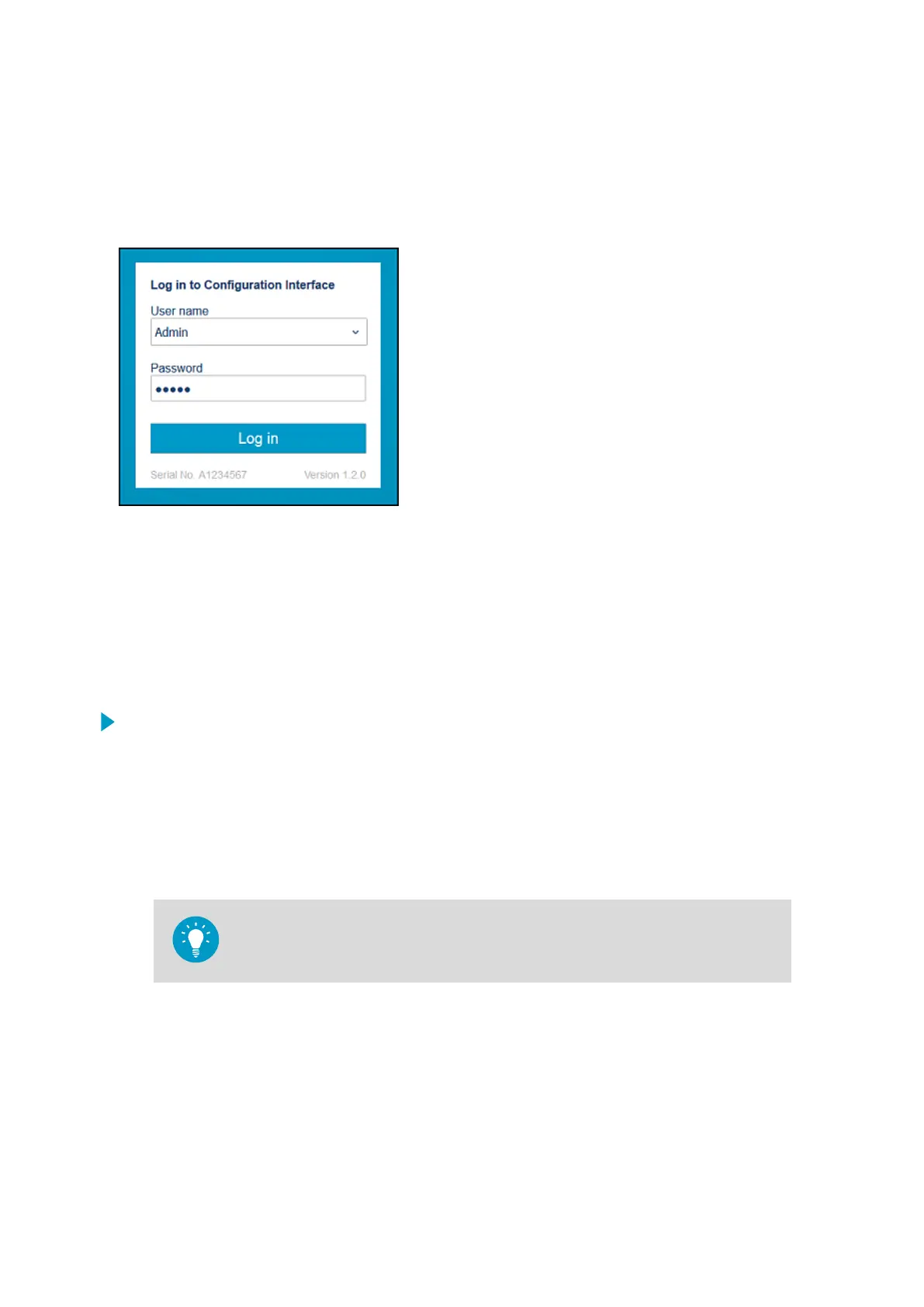 a. To log in as user (view-only access, no configuration rights), select User from the