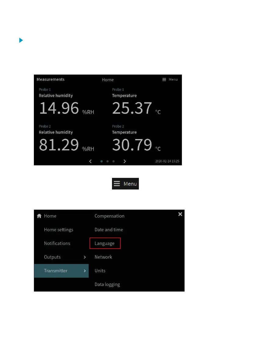 4. 用户界面的默认语言为英语。如果您要使用其他语言,请在 Transmitter (数据处理单