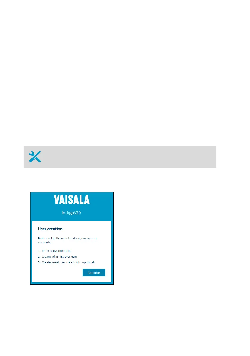 transmitter after a factory reset, you are prompted to create users for the web interface.
