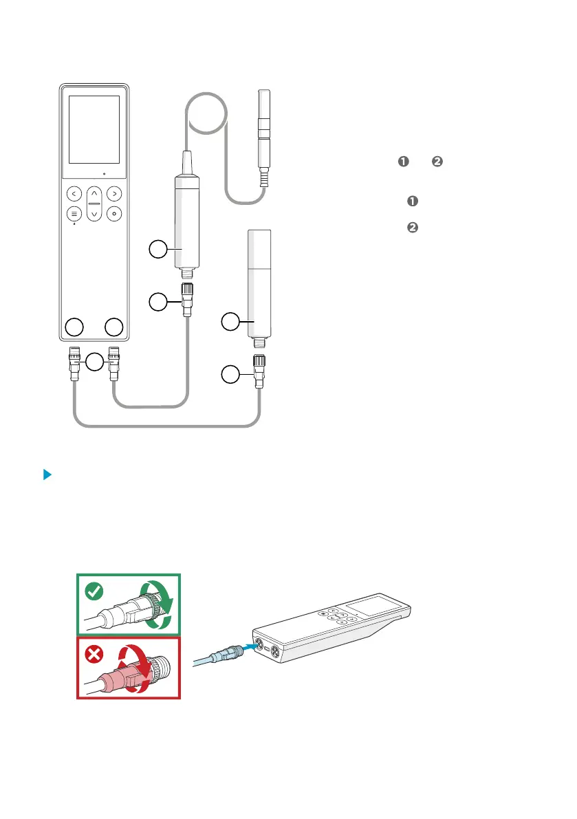 2. Insert the probe connection cable in one of the ports on the bottom of the indicator.