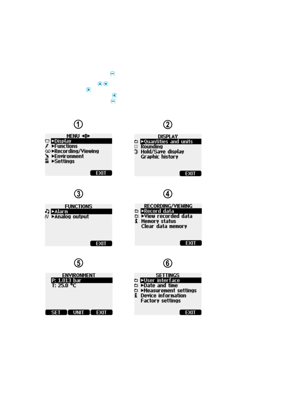 access recordings and clear the memory, set alarms, start adjustments, and use the analog output option of the MI70