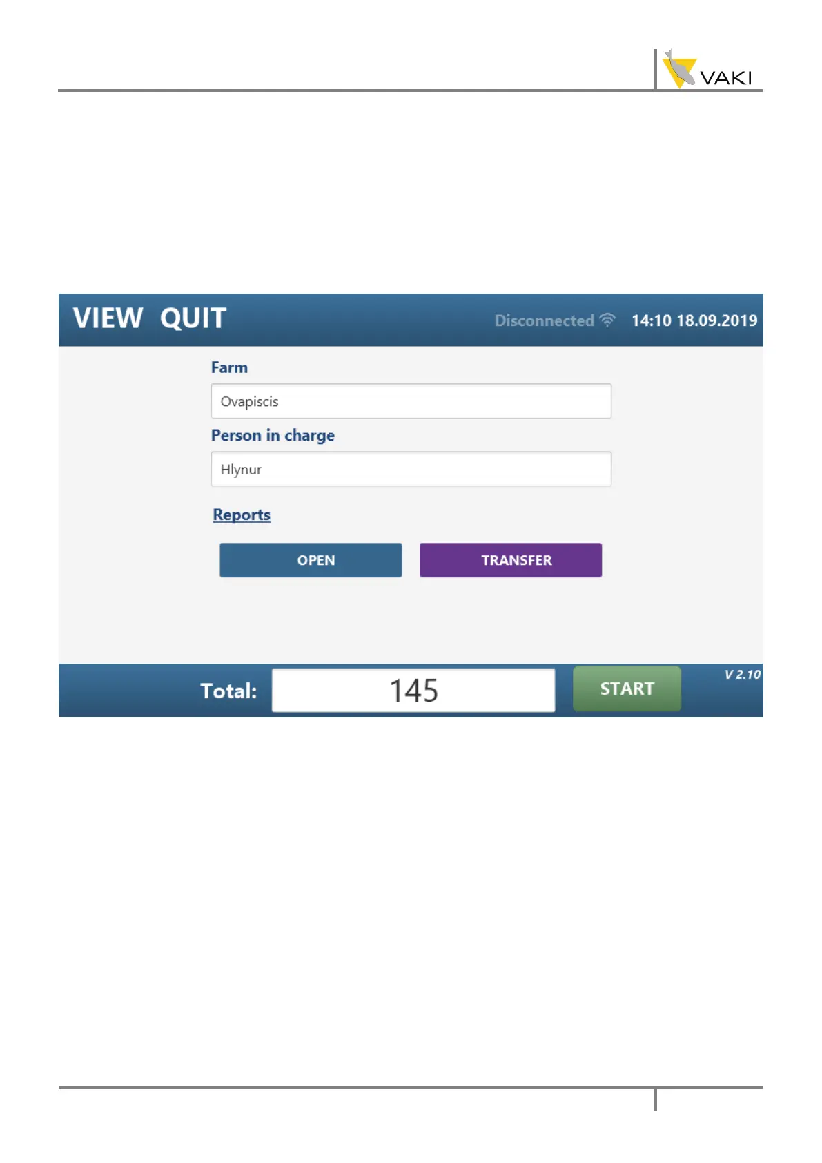 counting. Here are also OPEN and TRANSFER buttons to work with the generated reports from