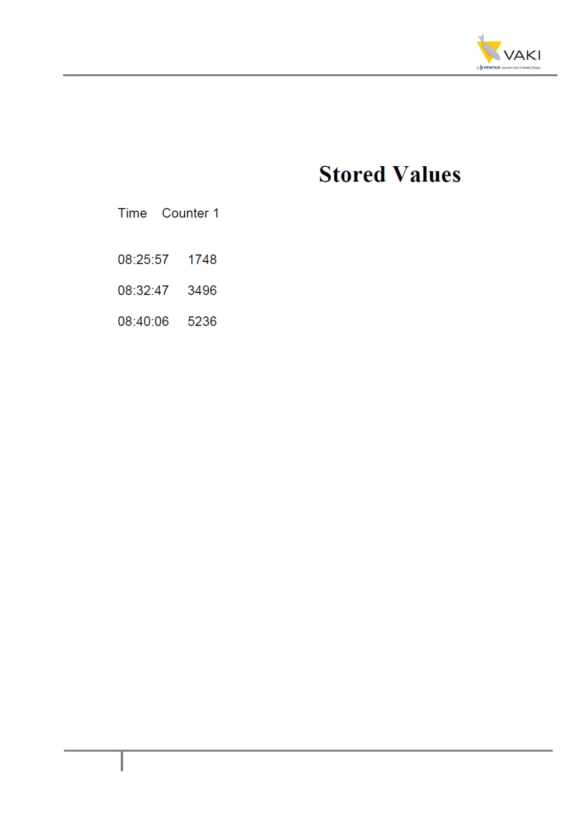 Stored values is displayed at the end of the report if any values have been stored: