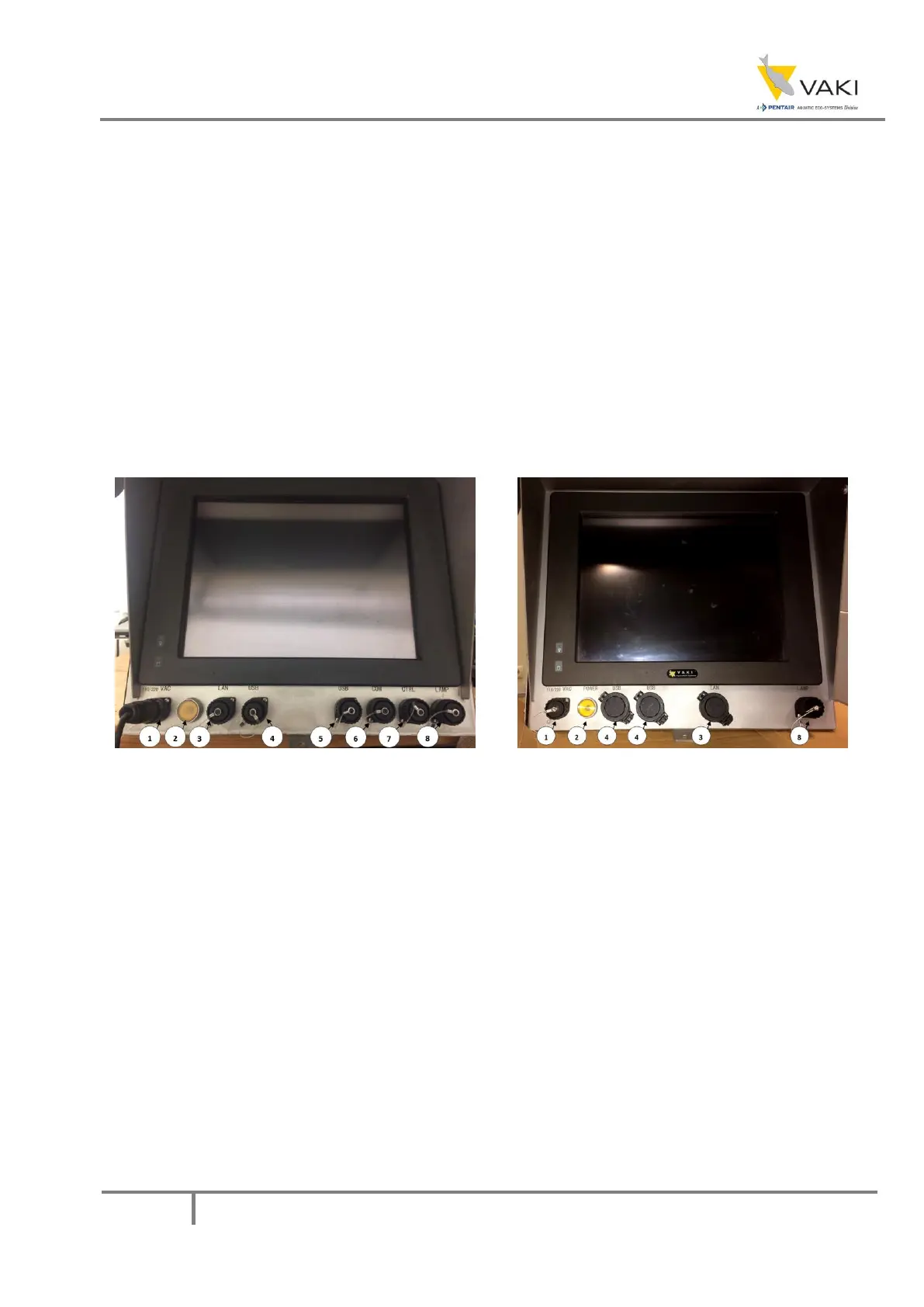At / below the screen there are connection ports and inputs for connection of power, lamp,