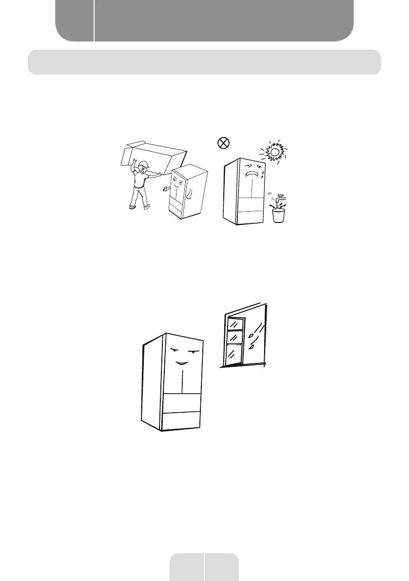 • Keep away from heat and avoid direct sunlight. Do not place the freezer in moist or wet