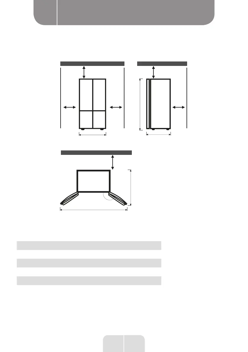 Spare enough space for convenient opening of the doors and drawers or statement by the
