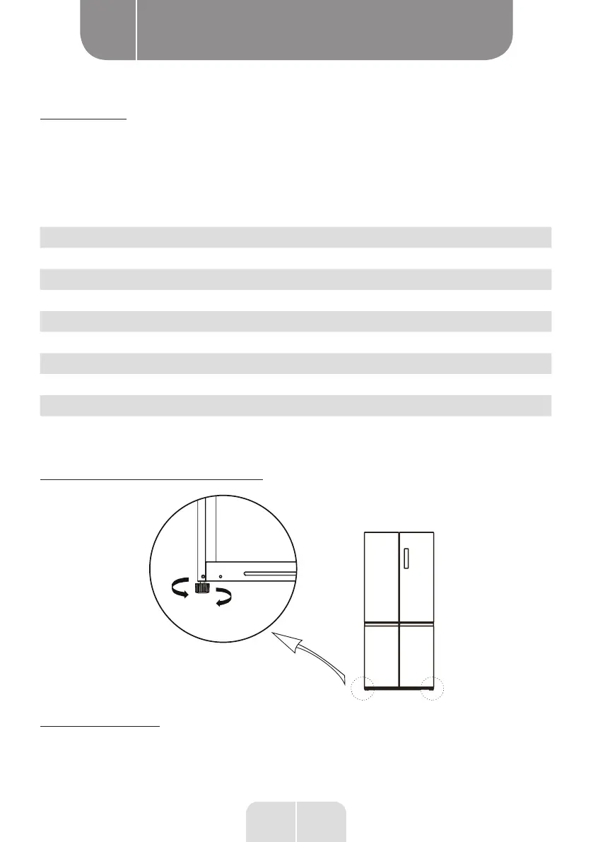 1. Turn the feet clockwise to raise the refrigerator;