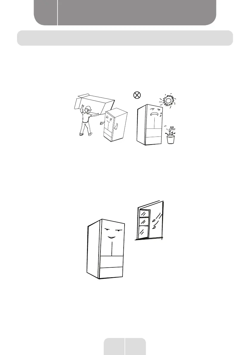 Vous ne devez pas pulvériser ou laver le réfrigérateur. Ne le placez pas dans des endroits