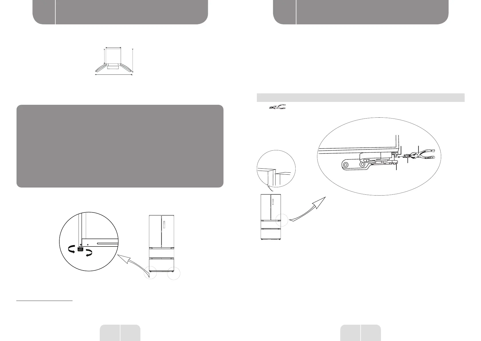 a. Draai de voeten in wijzerzin om de koelkast te verhogen;