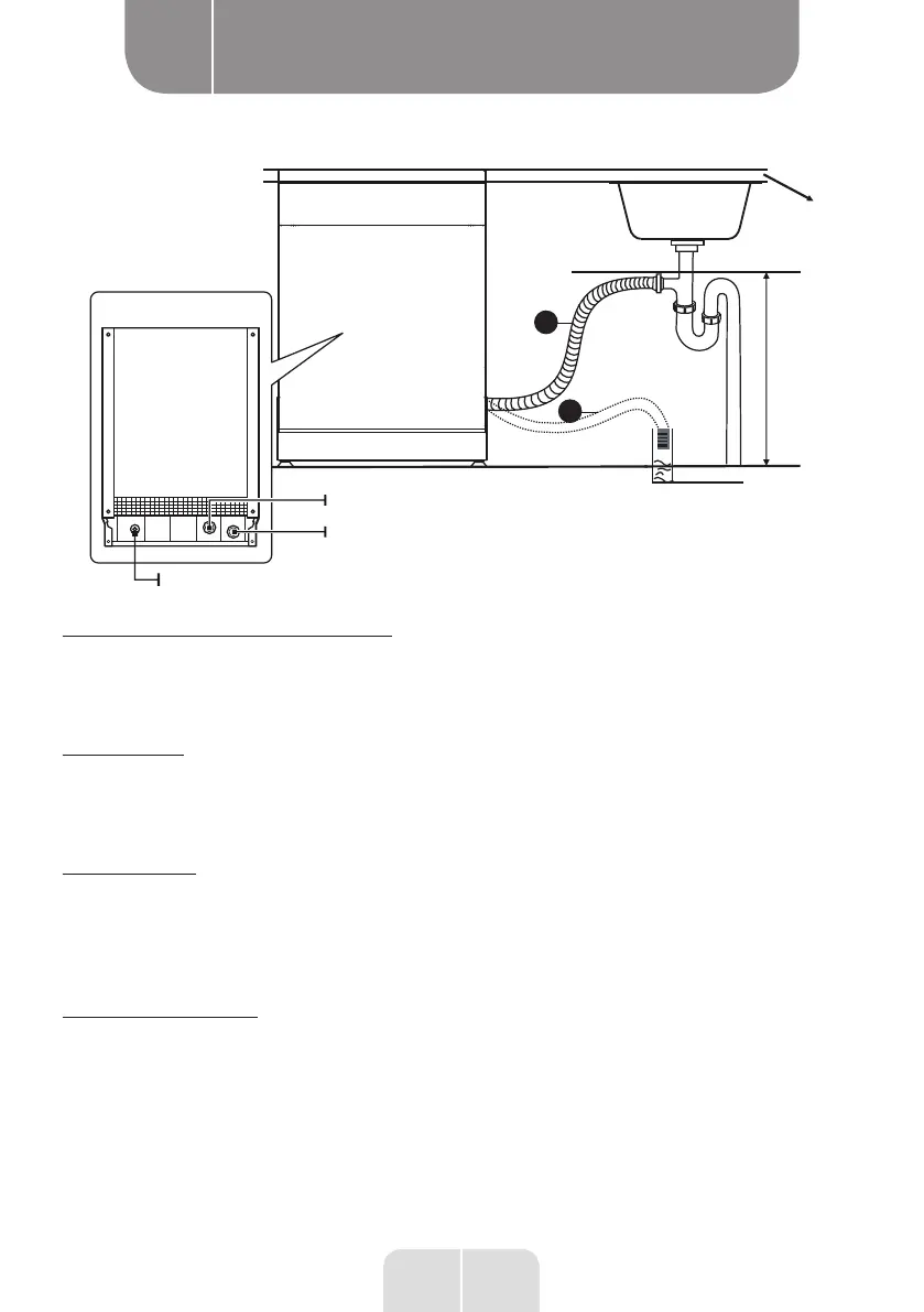 • If the sink is more than 1000 mm above the oor, excess water from the pipes cannot