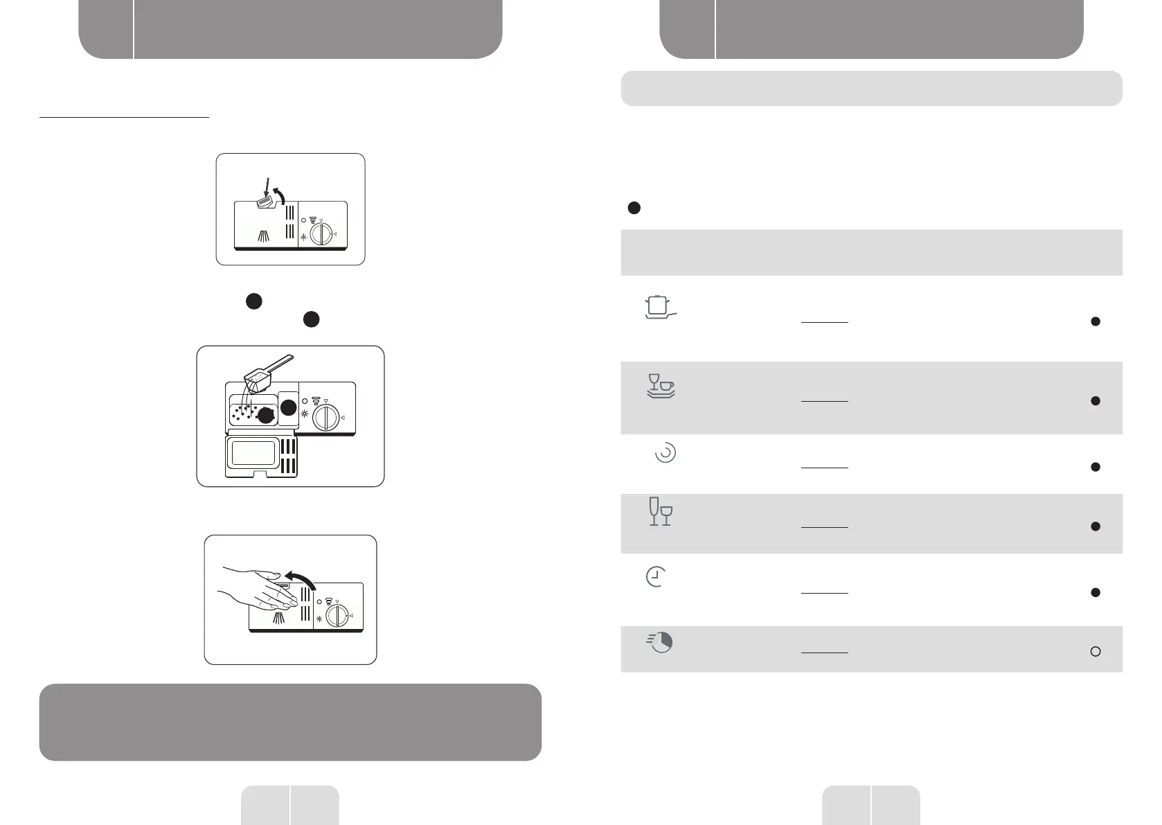 • The table below shows which programs are best for the levels of food residue on them and