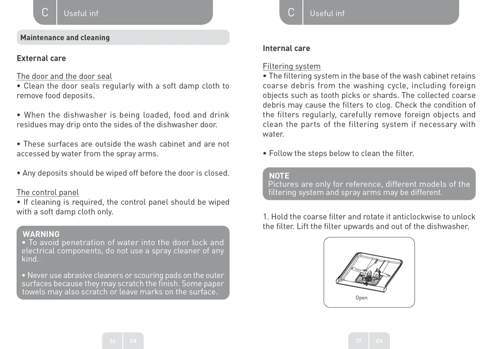 VALBERG 972744 - Useful Information; Exterior Maintenance and Cleaning; Interior Maintenance: Filter Cleaning