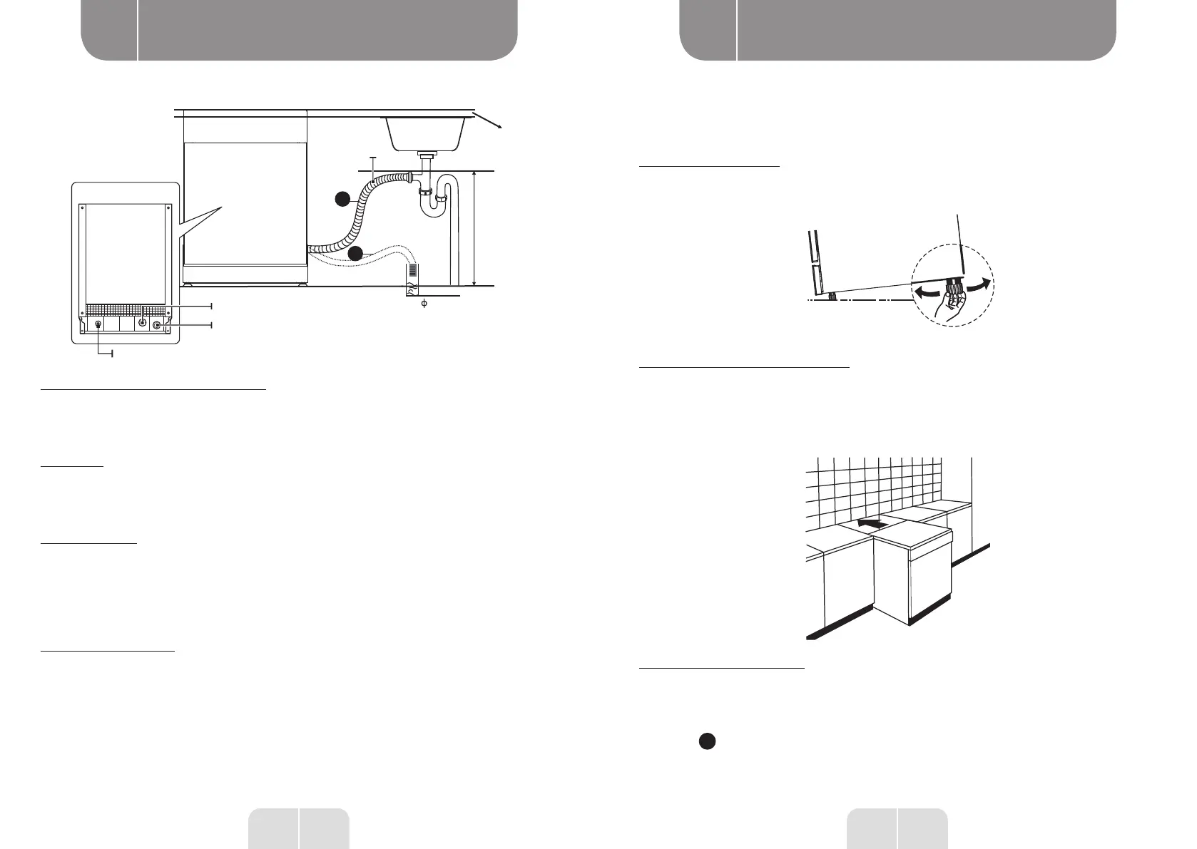 Une fois l'appareil positionné à l'emplacement requis, la hauteur du lave-vaisselle peut être