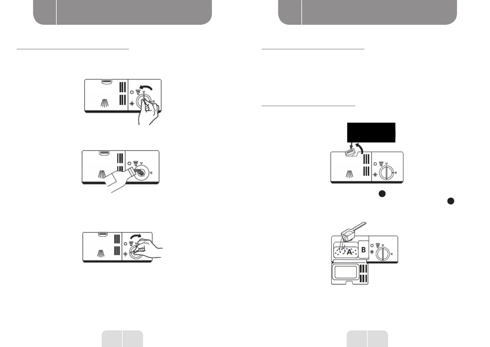 Ôtez le bouchon du compartiment à produit de rinçage. Tournez le cadran indicateur de