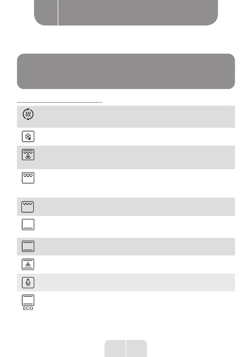 Positions of the oven function knob