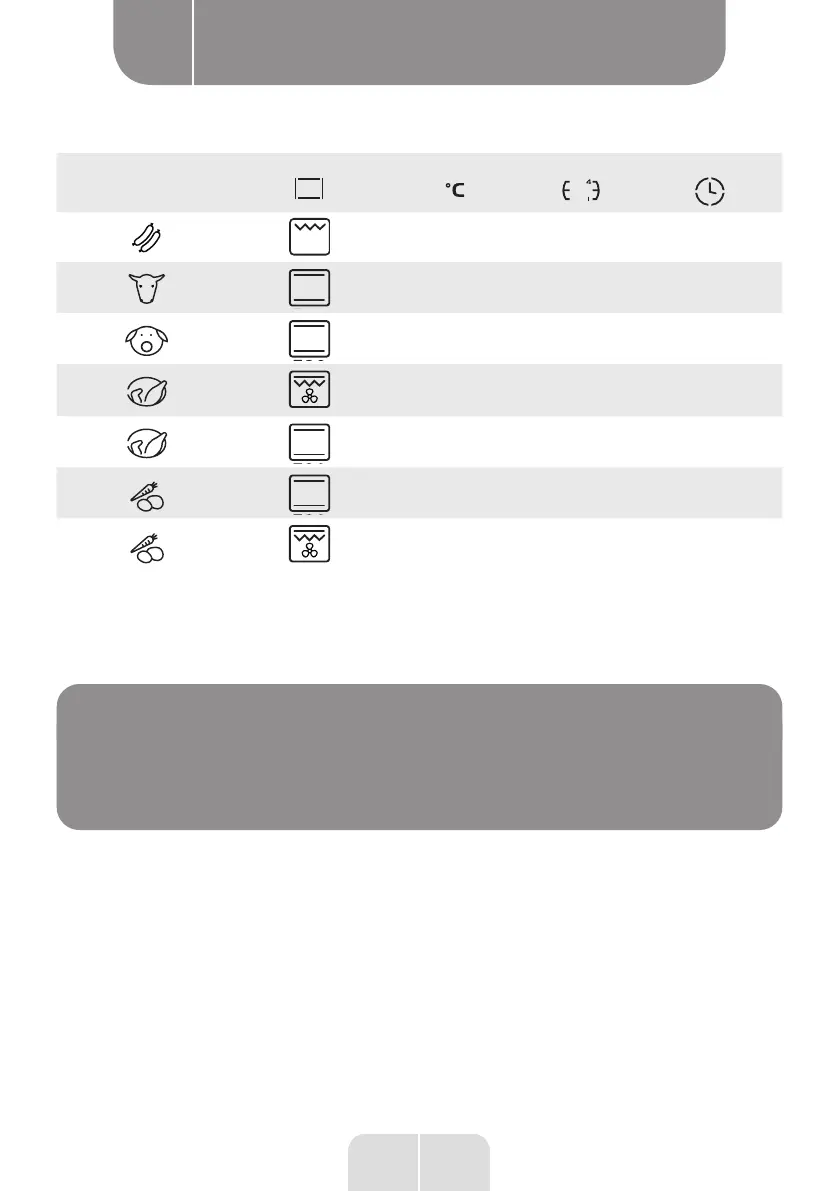 Oven Function Temperature Oven shelf Time [min.]