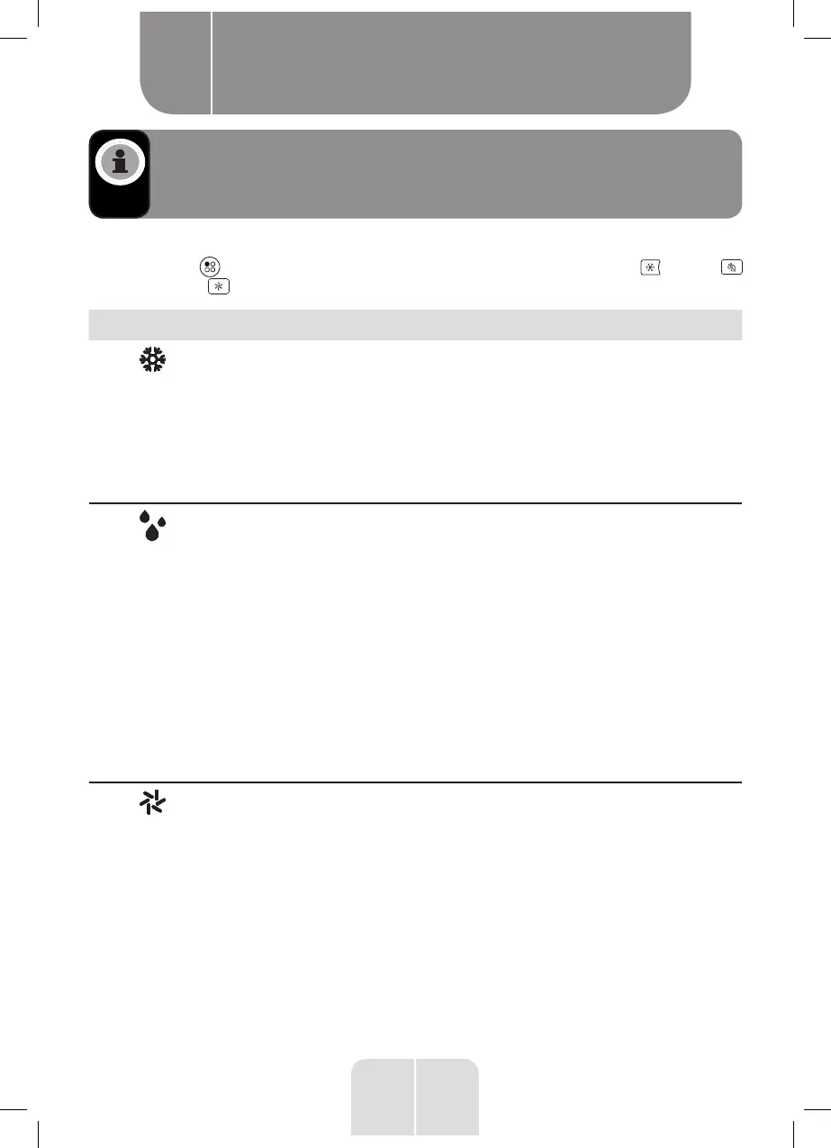 Druk op de knop om 1 van de 3 modi te selecteren of druk op de koelen , drogen