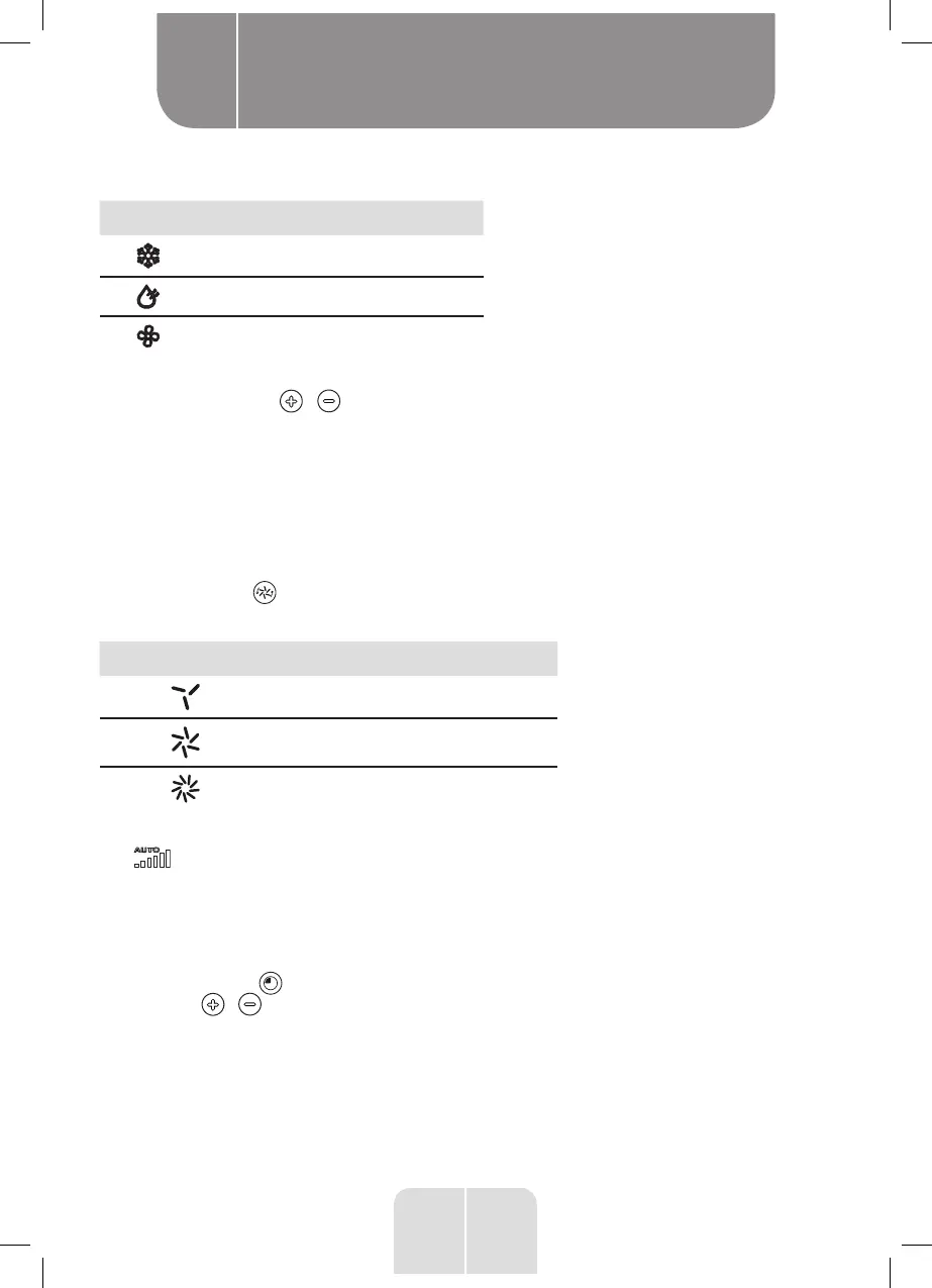mostrarán el nivel de velocidad. AUTO solo aparece en los modos Frío y Ventilador.