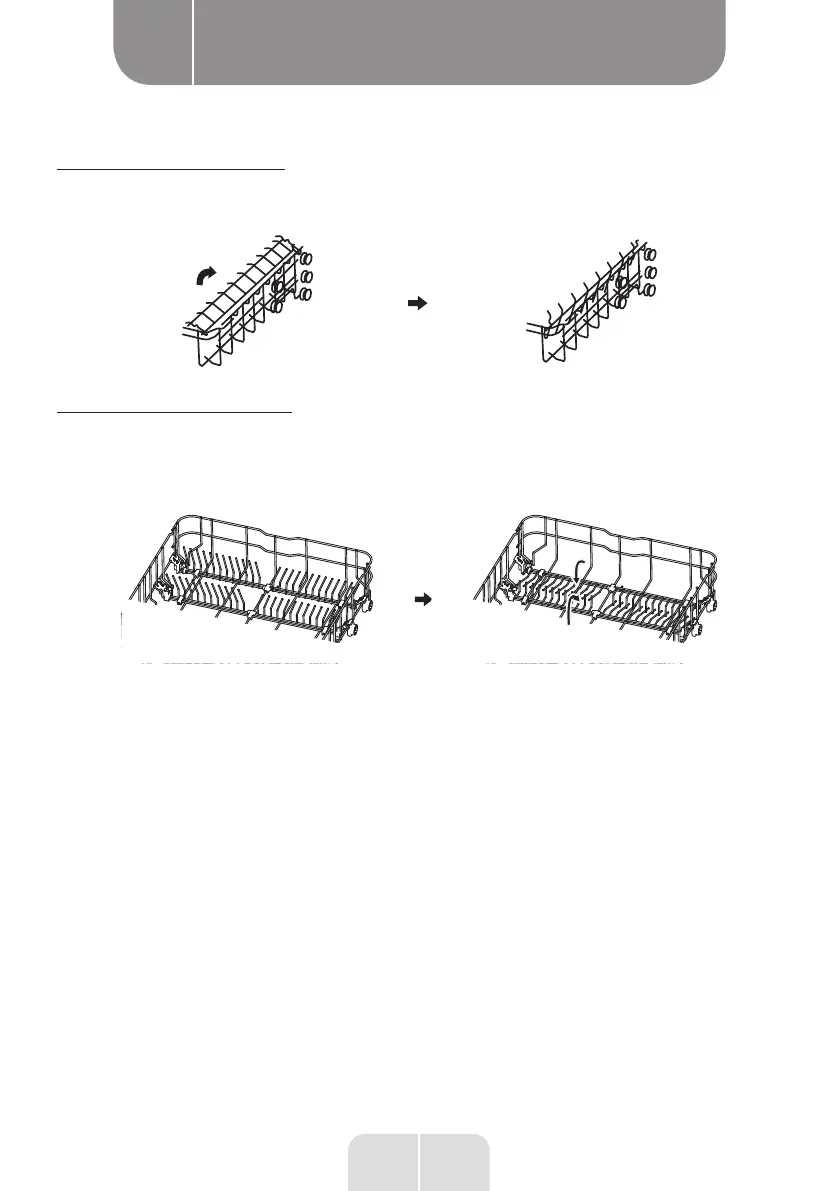 To make room for taller items in the upper basket, raise the cup rack upwards. You can then