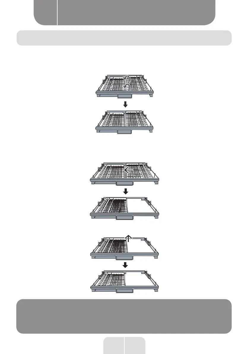 • To create more space for the glass basket, the cutlery rack can be removed. Steps :