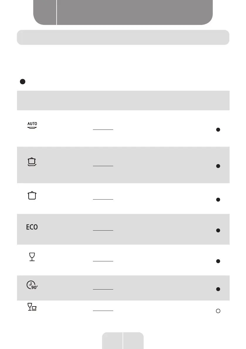 • The table below shows which programs are best for the levels of food residue on them and