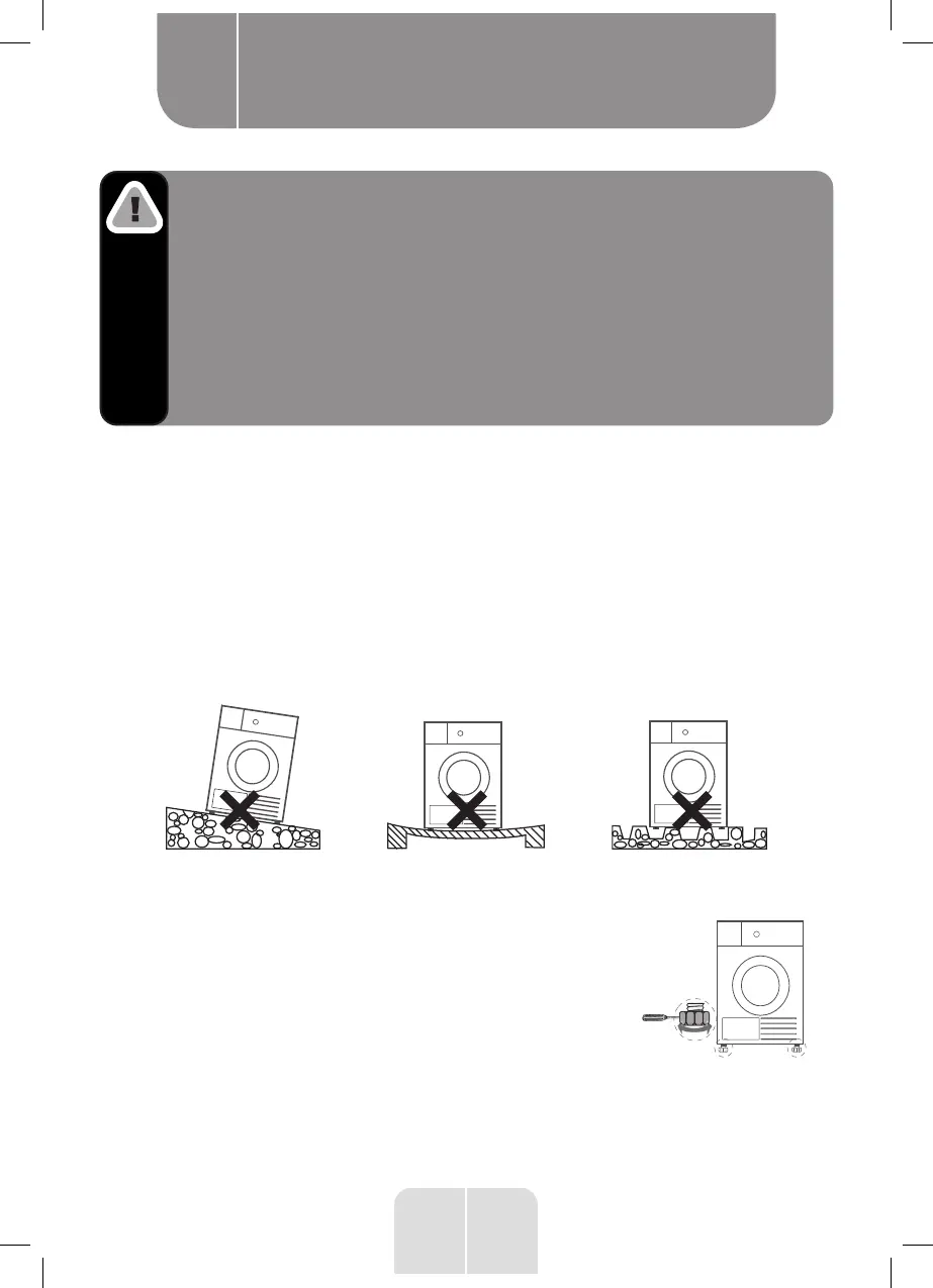 To keep vibration and noise within minimum level when the dryer is in use, it must be